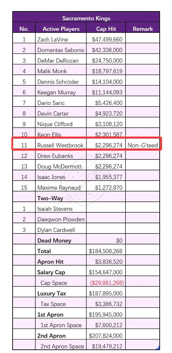 威少363万只占用229万的薪金空间,而且威少这份底薪是不保障性合同,国王一旦觉得他表现不佳随时可以裁掉他。